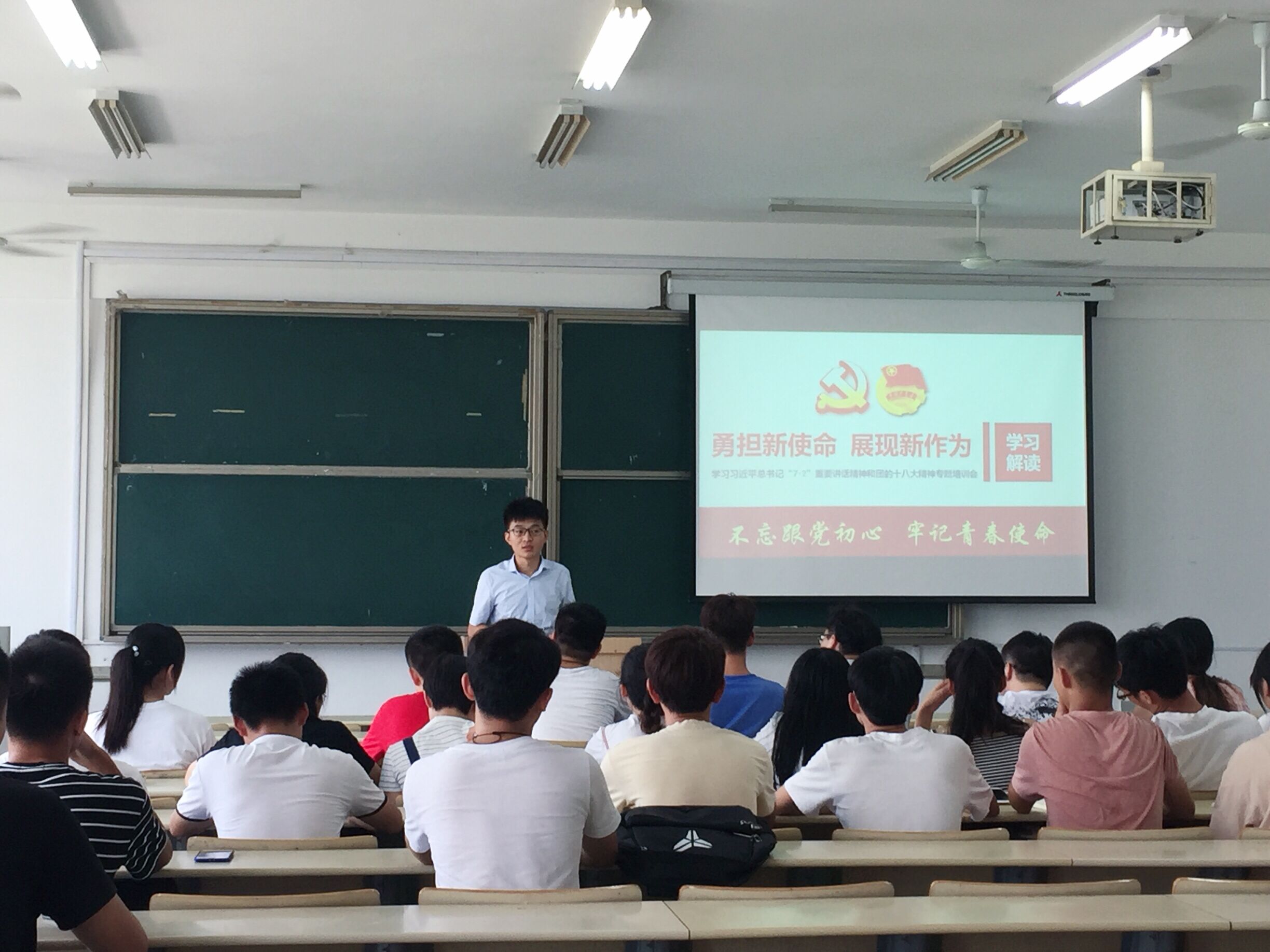 为进一步加强学习宣传习近平总书记“7.2”重要讲话精神、团的十八大精神,深入开展“1+100”直接联系青年工作,不断提高团干部联系青年、服务青年、引领青年的能力和水平,2018年9月19日,信息与计算机学院团委老师走进2017级计算机科学与技术2、3、4班团支部,开展了《团的十八大》主题团课。