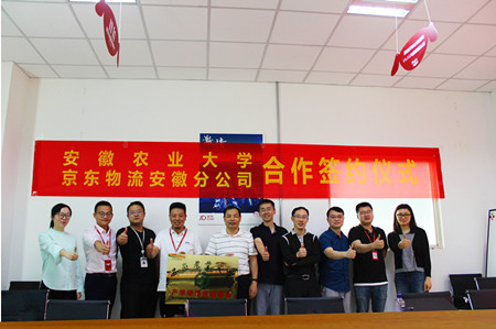 随后,在双方的见证下,曹俊书记与高洪波经理分别代表校企双方,为“安徽农业大学产学研用实践基地”进行授牌。授牌仪式后,双方就校企合作方向进行了深入广泛的交流沟通,在人才培养、生产实习、互动交流等方面达成初步意向。期间,曹俊书记一行还进入安徽省京东仓库进行参观体验,详细了解仓库内部品摆放、作业流程等基本情况,对京东物流华东区域分公司智慧化的操作和技术实力有了进一步认识。