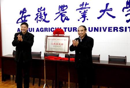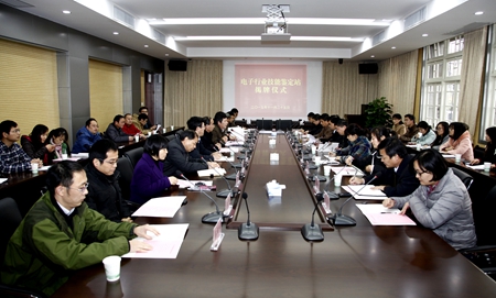 本网讯 11月25日下午,工信部电子行业特有工种职业技能鉴定站二级站揭牌仪式在我校第三会议室举行。安徽省经信委党组成员、正厅级巡视员常启斌,安徽农业大学校长程备久,副校长姚佐文,安徽省电子产品监督检验所第一书记姜新等领导出席揭牌仪式。揭牌仪式由姚佐文主持。