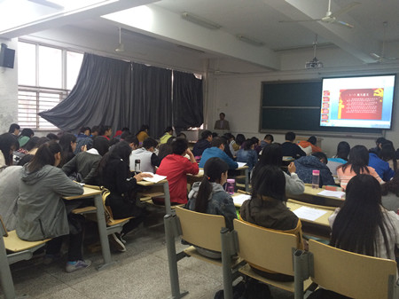 尤德胜老师紧紧围绕党的作风建设的基本内涵及核心问题、加强党的作风建设的重大意义和基本经验、加强党的作风建设的主要任务和基本路径等相关问题,逐层展开,详细解答了“是什么”、“为什么”、“怎么办”的问题。他指出加强大学生党员的作风建设,是加强党的建设的重要力量,是纯洁党的组织、提高党的战斗力的有效措施。他还结合学校实际,对同学们提出了具体要求,以真正做到“平常时期能看得出来,关键时刻能冲得出来,危难关头能豁得出来”。