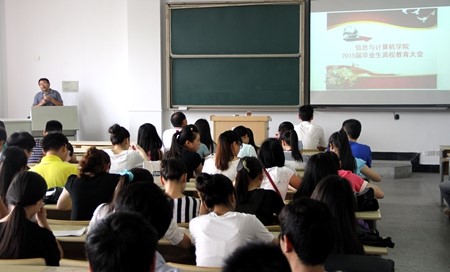 本网讯 6月25日上午,我院在经计楼302教室举行2015届毕业生毕业教育暨离校工作大会,学院党委书记曹俊、院长张友华,副院长张武出席了大会,毕业班班主任和全体毕业生参加了大会。