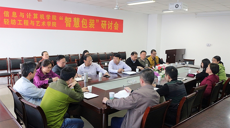 本网讯 2014年4月22日下午,由安徽农业大学信息与计算机学院和轻纺工程与艺术学院联合举办的2015年“智慧包装”研讨会在信息与计算机学院406会议室召开。信息与计算机学院院长张友华、轻纺工程与艺术学院院长杜兆芳率两院相关系部老师参加研讨会,信息与计算机学院党委书记曹俊出席会议。会议由张友华主持。