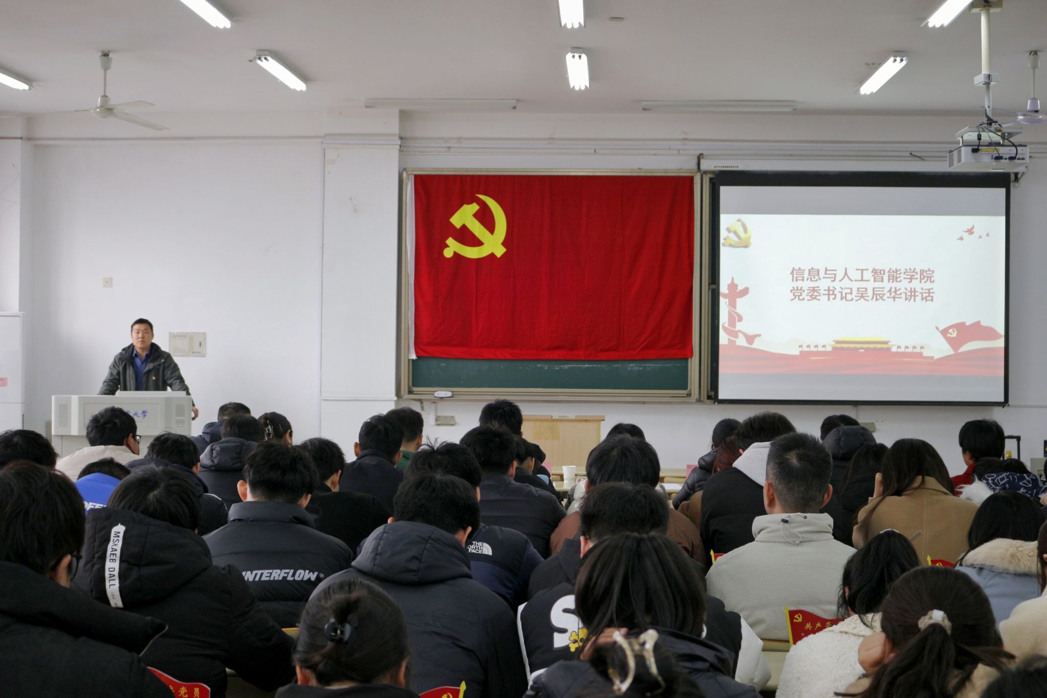 本网讯 3月1日下午,信息与人工智能学院开展了“以学铸魂强党性 笃行逐梦践初心”为主题党性教育暨入党宣誓仪式,这是学院党委精心设计组织的“开学第一课”,旨在激发全体党员育党心、强党性、践党行。学院党政领导、党委委员、党支部书记、全体学生党员、教工党员代表参加了仪式。