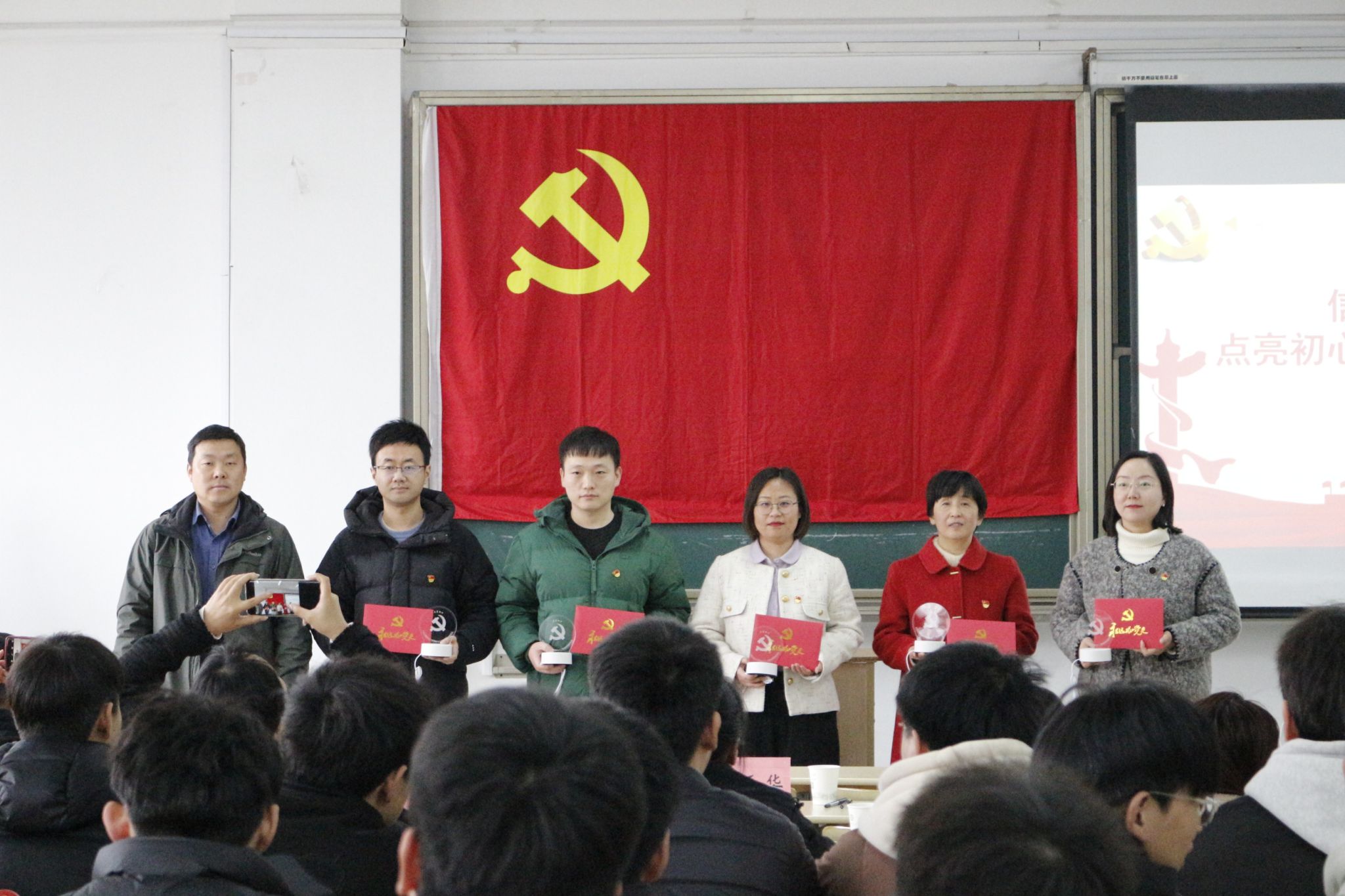 入党是政治生命的开始。仪式上,学院党委委员、副院长张成堂宣读了新发展党员名单及按期转正党员名单。各支部正式党员逐一为新发展党员佩戴党员徽章;党委委员和各党支部书记为新发展党员颁发“党员铭牌”和“行为尺”,为按期转正的党员点亮“初心灯”。金灿灿的党徽亮出的是责任,赢得的是信任,接受的是监督,时刻提醒党员要始终牢记党的宗旨,增强党员的责任感、使命感和荣誉感。“党员铭牌”、“行为尺”、“初心灯”就是勉励全体师生党员要牢记身份,争当表率;要履职承诺,遵规守纪;要擦亮底色,锤炼品格。