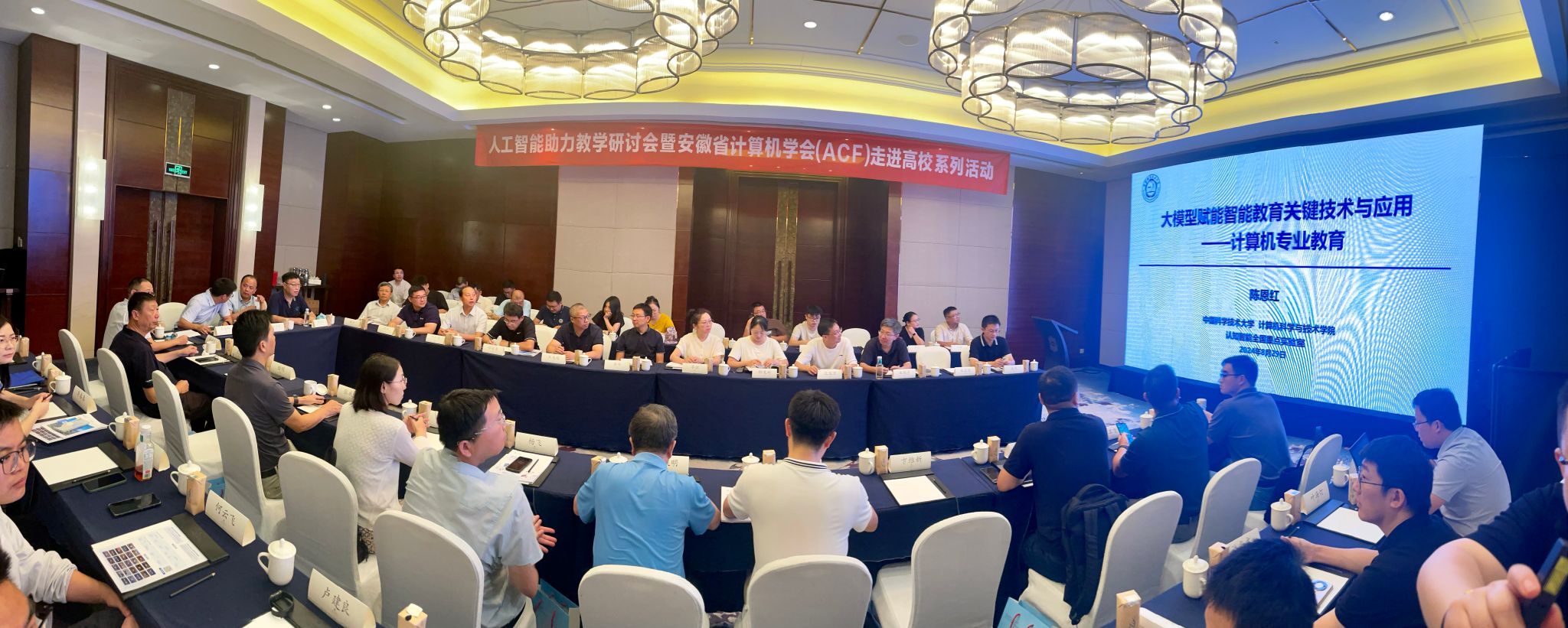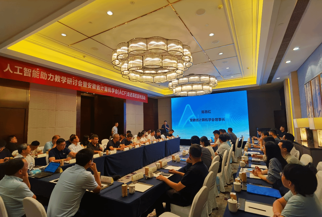 本网讯 8月29日,由安徽省教育厅指导,安徽省计算机学会(ACF)主办,我院承办的“人工智能助力教学研讨会暨安徽省计算机学会(ACF)走进高校系列活动”在合肥成功举办,来自中国科学技术大学、合肥工业大学、安徽大学、安徽建筑大学等省内20余所高校的专家齐聚一堂,分享人工智能助力教学前沿洞察与数字化人才培养实践。
