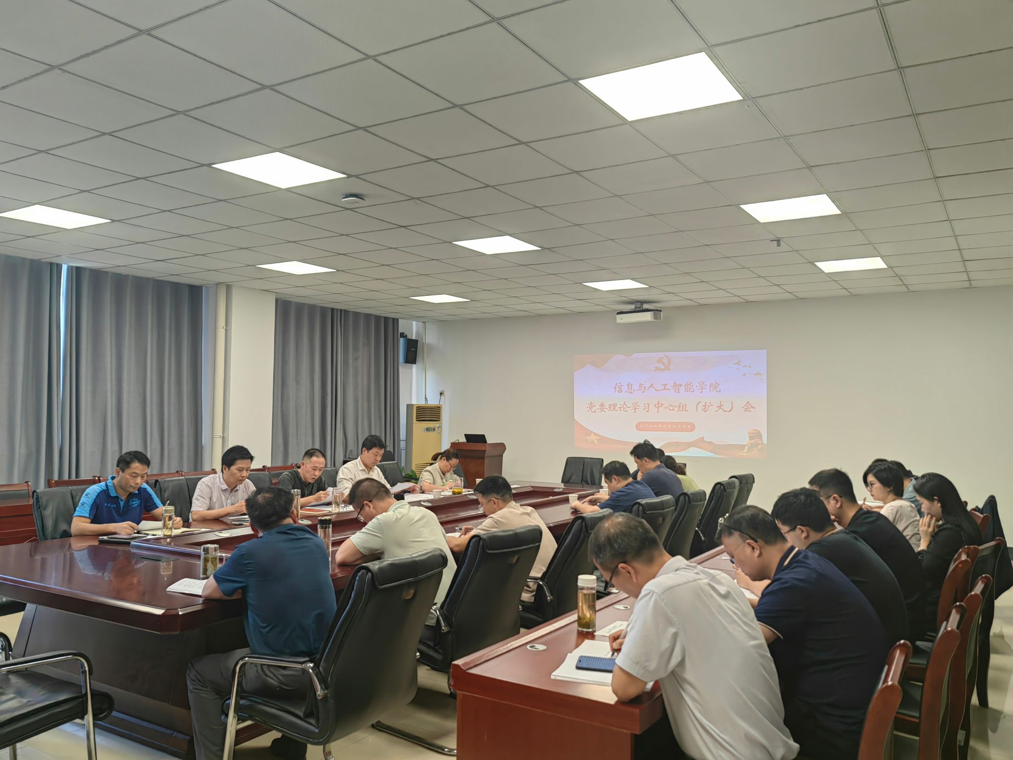本网讯 9月27日,我院召开党委理论学习中心组(扩大)会。会议由学院党委书记吴辰华主持,学院党政领导班子、党委委员、各党支部书记、系部中心主任和办公室工作人员参加会议。