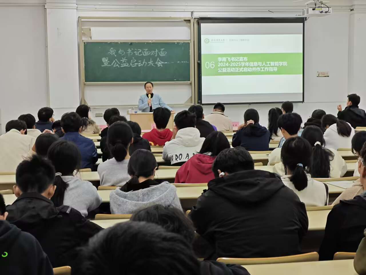 本网讯 10月25日,我院202教室举行2024-2025学年公益活动启动大会暨“我与书记面对面”活动。学院党委副书记、纪委书记李南飞出席会议,200余名师生代表参加了会议。