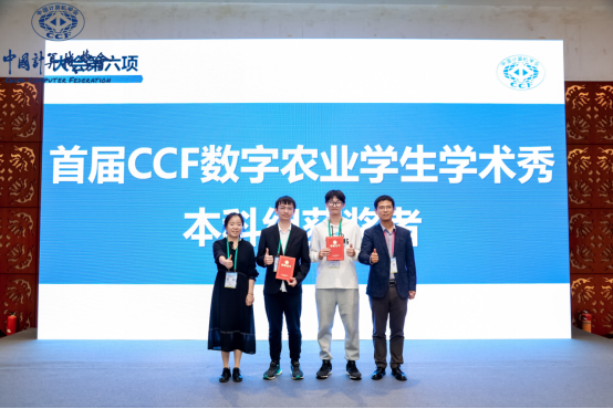 本网讯 11月1日—3日,中国计算机学会CCF第二届数字农业分会暨首届CCF数字农业学生学术秀在广州举行。本次活动由CCF数字农业分会主办,吸引了全国众多涉农高校学子的积极参与。我院多名学子与中国人民大学、西北农林科技大学、华中农业大学、华南农业大学等高校选手同台竞赛。通过激烈比赛,吴康磊和张传坤同学分别获得本科组二等奖、硕士组三等奖,邓友慧同学通过Poster展示了最新的研究成果。