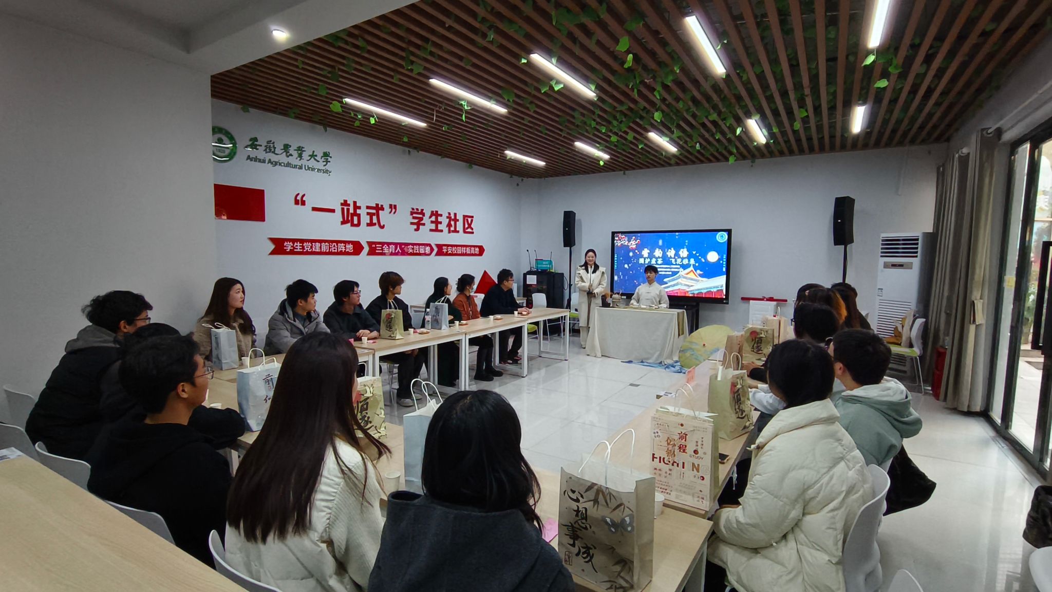12月6日,正逢大雪时节,学院师生围炉而坐,共吟诗词。活动特别邀请“一盏年华·祥源茶吧”茶艺师为大家带来主题为“行者无疆”的茶艺表演,伴随着悠扬的旋律和飘扬的茶香,现场师生沉醉其中。飞花令环节更是将活动推向了高潮,同学们分组围绕“风”“花”“雪”“月”四个主题字进行诗词比拼,展现了中华传统文化的魅力。最后,围绕茶艺体验、诗词文化以及活动组织等话题的交流,让师生们对传统文化有了更深的认识和感悟。
