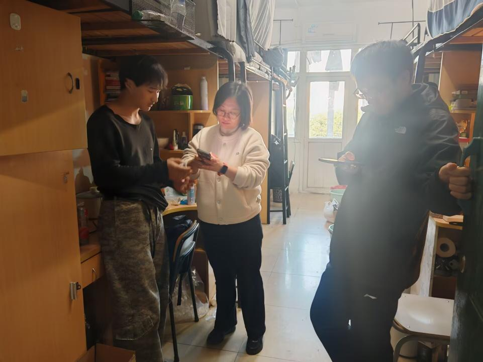 走访过程中,学院领导和辅导员老师们深入每一间宿舍,与同学们进行了亲切友好交流。对即将面临人生重要选择的应届毕业生,走访小组给予了重点关怀。学院领导与辅导员们细致询问了考研学子的复习进度与心理状态,了解求职学生的应聘进展与职业规划,并认真倾听、记录了大家在考研、求职过程中遇到的“急难愁盼”问题。学院领导们表示学校和学院非常重视升学就业工作,勉励考研学子坚定信心、科学备考,祝福求职同学顺利拿到人职匹配的录用通知,并表示学院将整合资源、搭建平台。对于非应届的本科生和研究生,老师们同样给予了高度关注,细致了解了他们的课程学习、科研进展、校园生活适应情况及未来发展规划,鼓励低年级同学打好专业基础,引导高年级同学积极参与科创实践,实现全面发展。