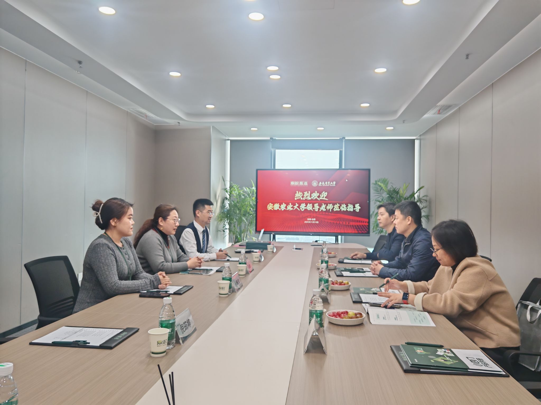 11月11日,在合肥研力电子科技有限公司开展访企拓岗时,学院一行参观了企业生产车间,详细了解其主营业务与产品线。随后双方举行座谈,就校企合作进行深入洽谈。双方表示将积极对接人才培养与实习需求,共同探索产学研融合新路径。座谈结束后,双方共同为“安徽农业大学就业实习基地”揭牌,为后续协同育人奠定坚实基础。