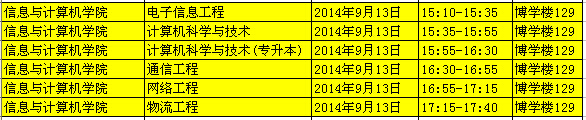 1、时间:9月13日15:10-17:40(具体见附表)。