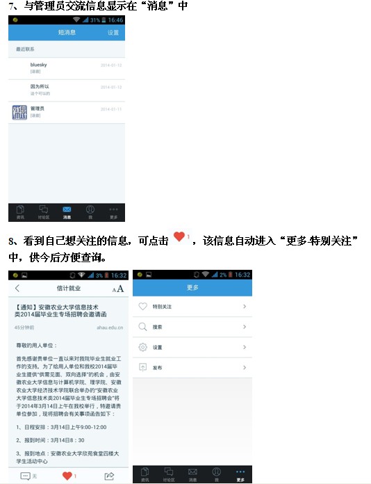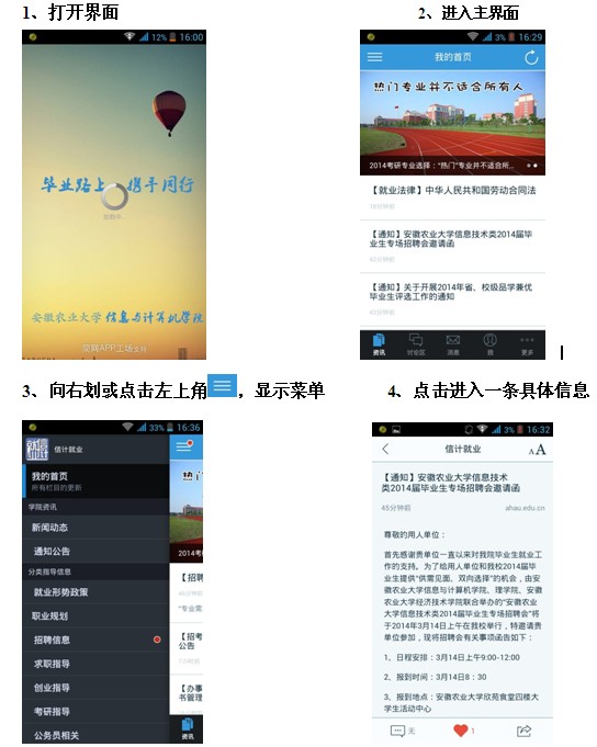 为更好地在新媒体时代做好大学生就业指导工作,学院开发了“信计就业”手机APP软件并正式发布,这是一款面向我院全体学生,提供包括就业指导、招聘、考研、公务员招考等信息的移动平台。学生在就业相关工作中有任何疑问,均可通过本软件与学院管理员(安农信息与计算机学院团委)之间进行语音或文字交流,管理员会尽快做出解答。并可通过讨论区自由发贴,展开讨论。学院也会将重要信息通过APP软件及时推送给大家。使用过程中如有意见或建议可给管理员留言或致电65786155。欢迎大家安装使用。(可扫描二维码或下载.apk文件安装,安卓用户和iOS用户均可安装)