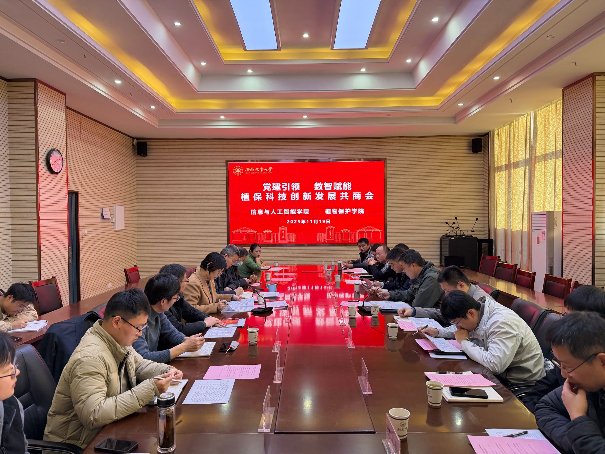 为进一步加强院系间合作,促进青年教师成长,搭建跨学科交流平台1119下午,信息与人工智能学院党委书记吴辰华副院长岳振宇带领学院青年教师代表植物保护学院开展青年教师院系交流活动,植物保护学院党委书记刘柳、副院长方庆奎等青年教师代表热情接待并参与交流座谈。