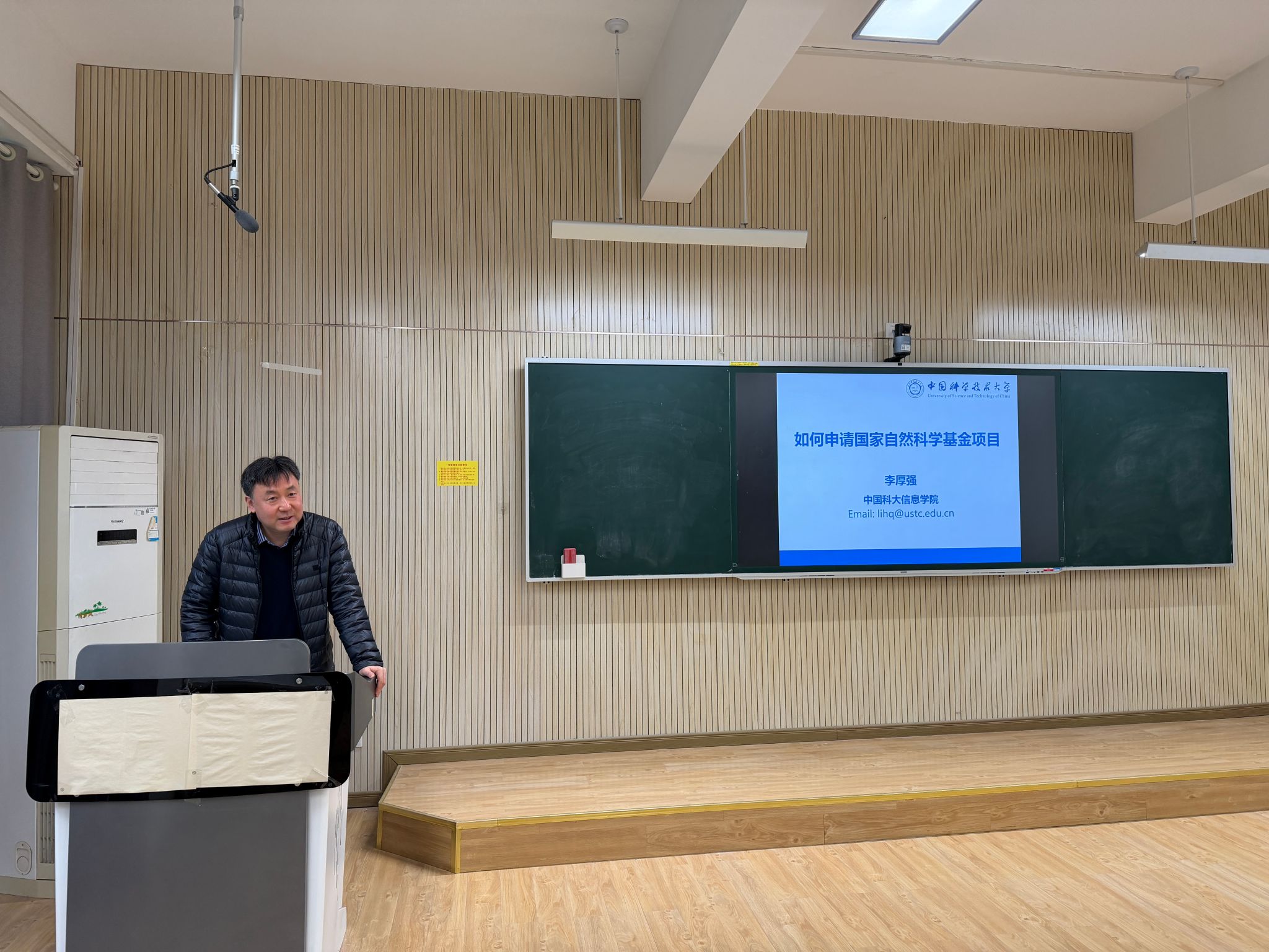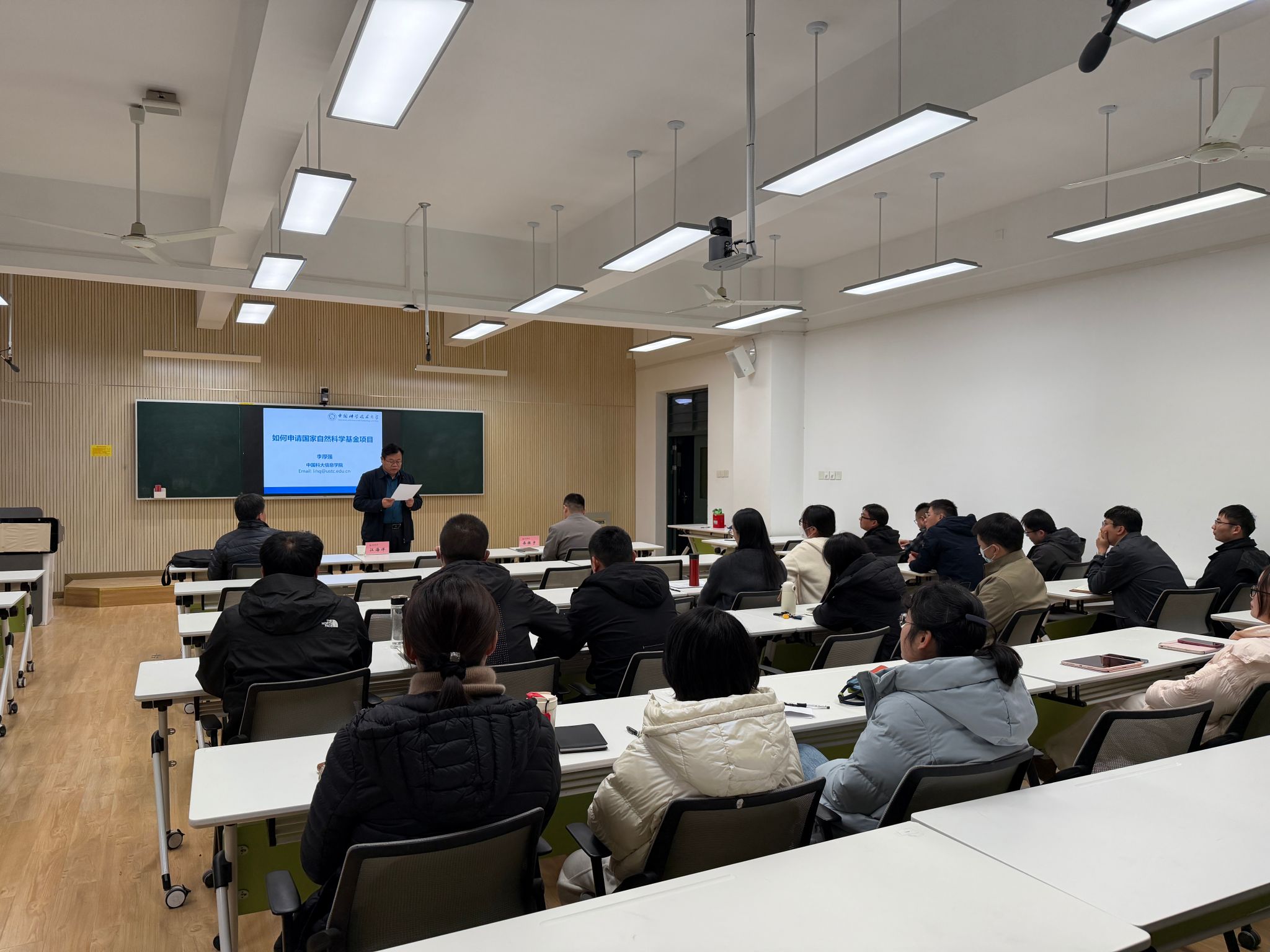 本次报告会以 “如何申请国家基金” 为核心主题,李厚强教授结合自身丰富的基金评审经验与科研项目申报实践,从申报政策解读、选题技巧、申请书撰写规范、创新性提升、立项依据、评审要点把握等多个关键维度展开深入辅导。报告中,李教授把自己的两个面上项目作了深入的样例分析。强调选题需紧扣国家战略需求与学科前沿方向,既要凸显研究的科学价值,也要注重实际应用潜力。最后分享了避免共性错误、提升申请书竞争力的实用技巧,并给了青年教师几点申报建议。